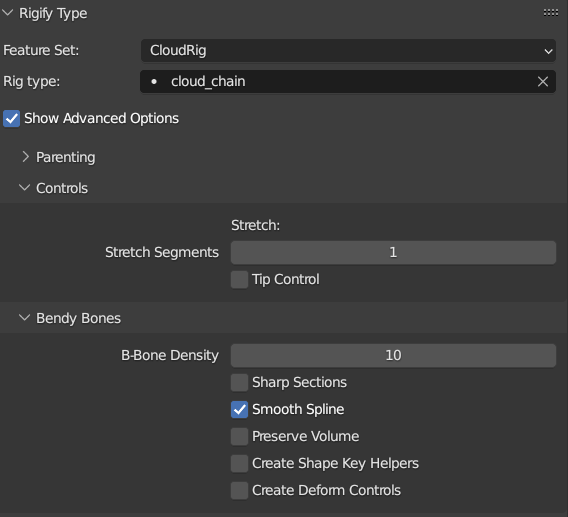 Rigify Type > Show Advanced Option #2 Smooth spline